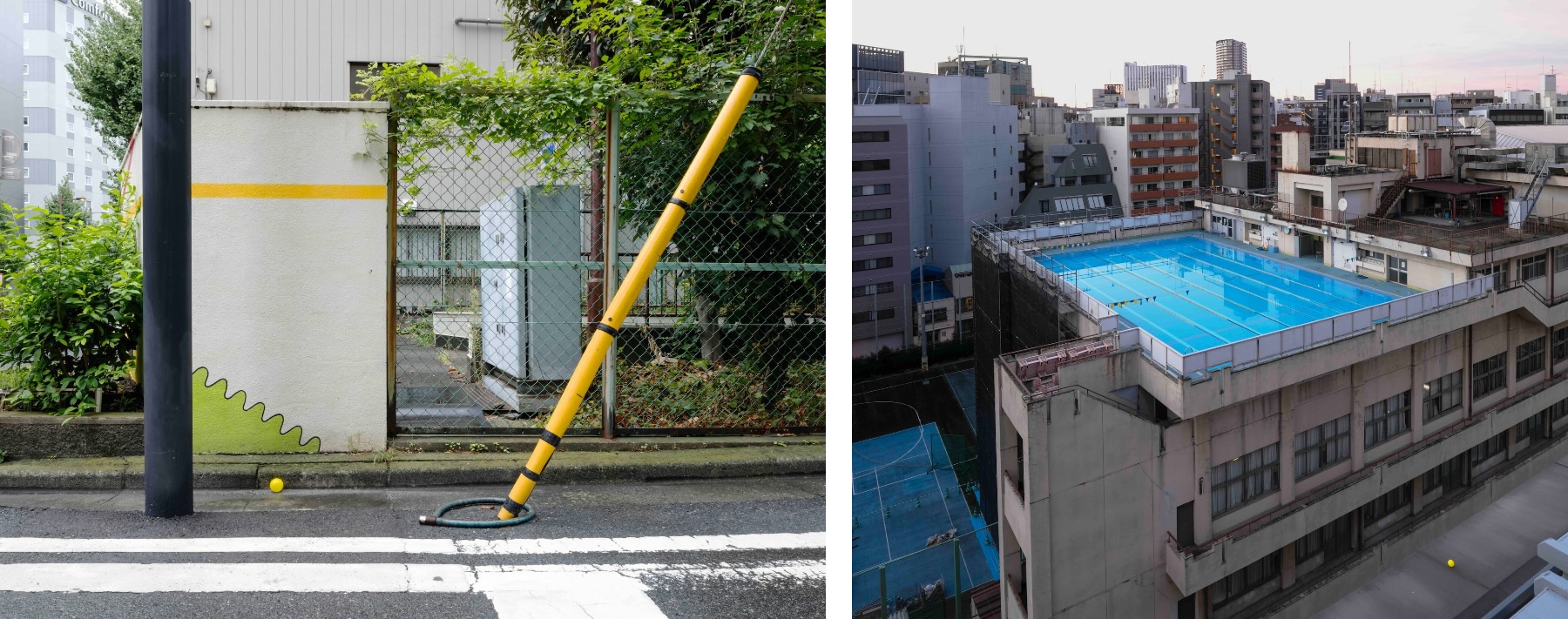 左から:《イエロー/ワイヤーロック》、《イエロー/屋上プール》(いずれも2025年)